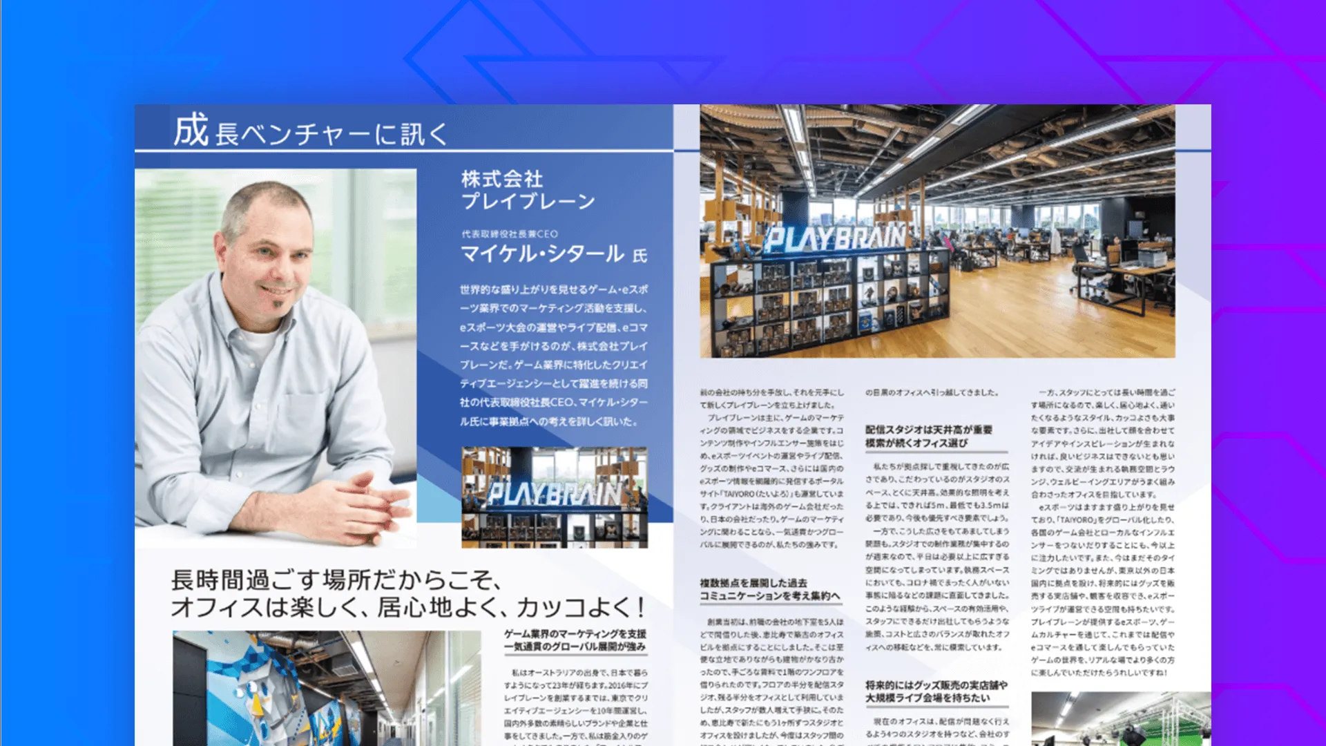 本記事では、プレイブレーンのオフィス環境へのこだわりや、今後の展望について語っています。