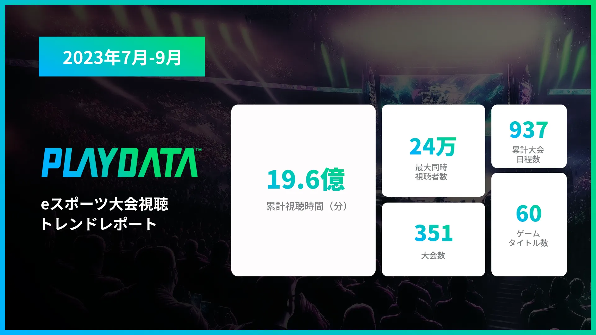 国内におけるeスポーツ大会の累計視聴時間は19.6億分(前年比11%増)2023年7-9月の国内eスポーツ大会視聴トレンド【PLAYDATA】